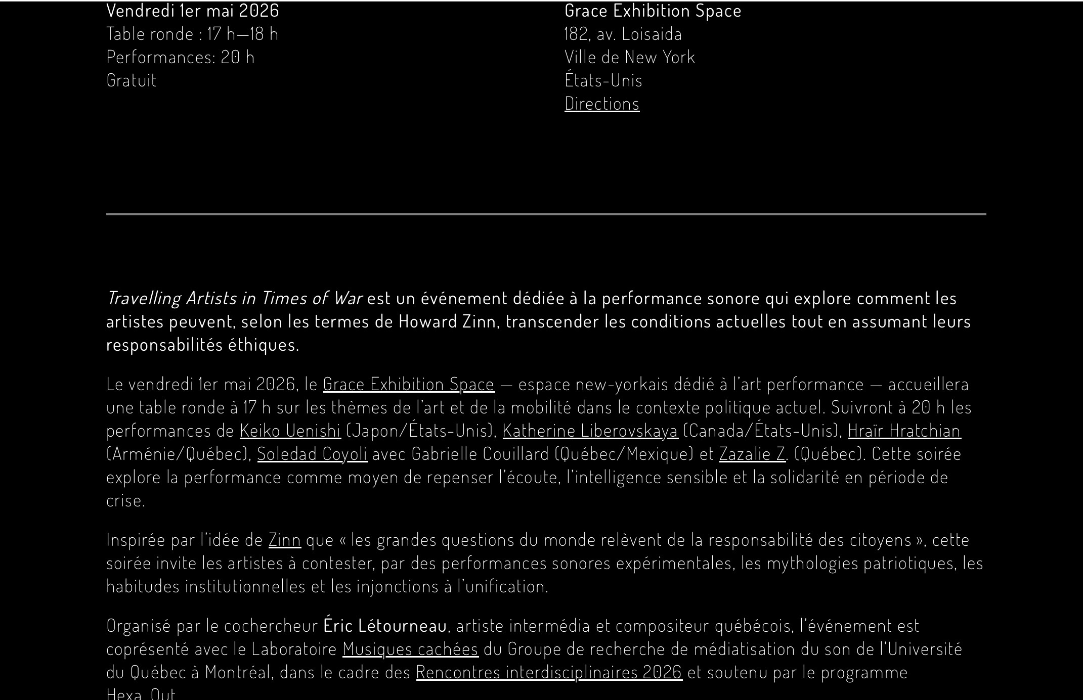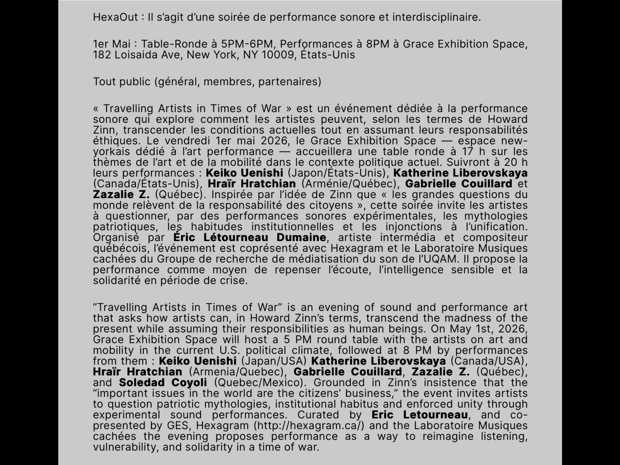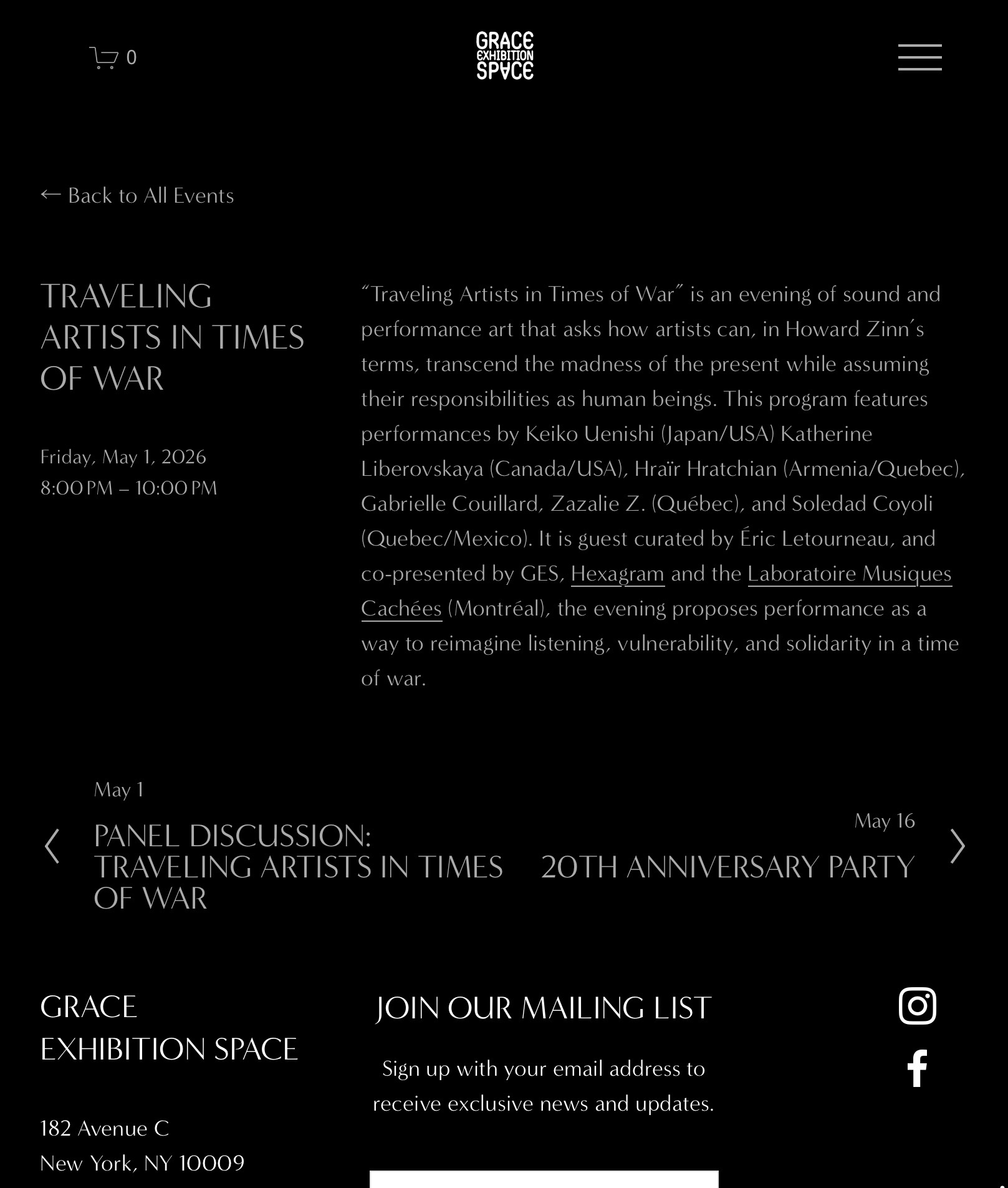 Grace Exhibition Space Gallery NYC Mai 2026 Zazalie Z.